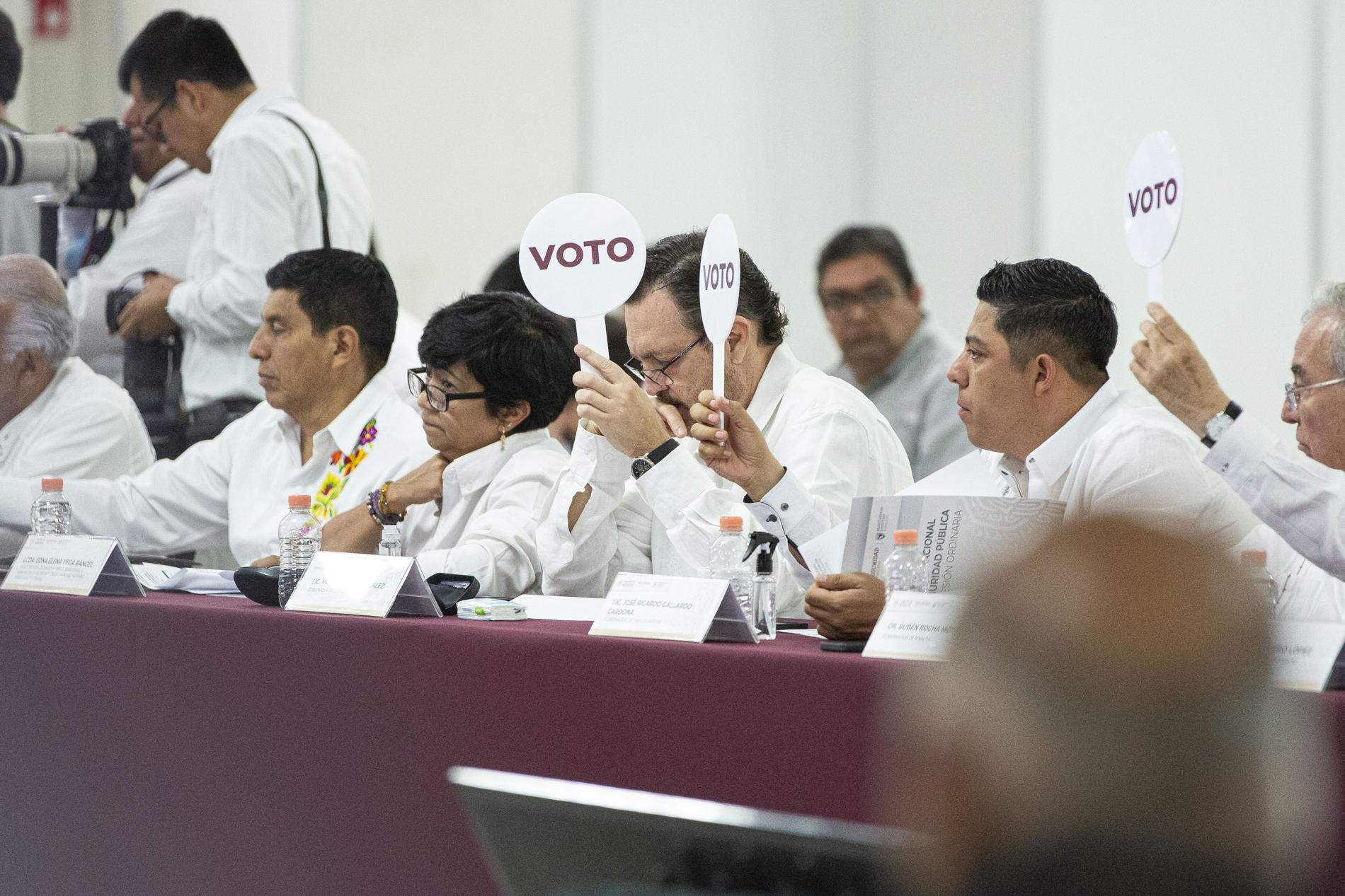 En la Heroica Escuela Naval Militar de Alvarado, en Veracruz, se reunieron los titulares de las entidades federativas, así como las instancias encargadas de la seguridad y la procuración de justicia del país, a fin de medir resultados y tomar acuerdos para consolidar estrategias conjuntas que se reflejen en resultados para las y los ciudadanos. Acudieron a la sesión, el gobernador de Veracruz, Cuitláhuac García Jiménez; las y los gobernadores de los estados e integrantes del Gabinete del Gobierno de México.