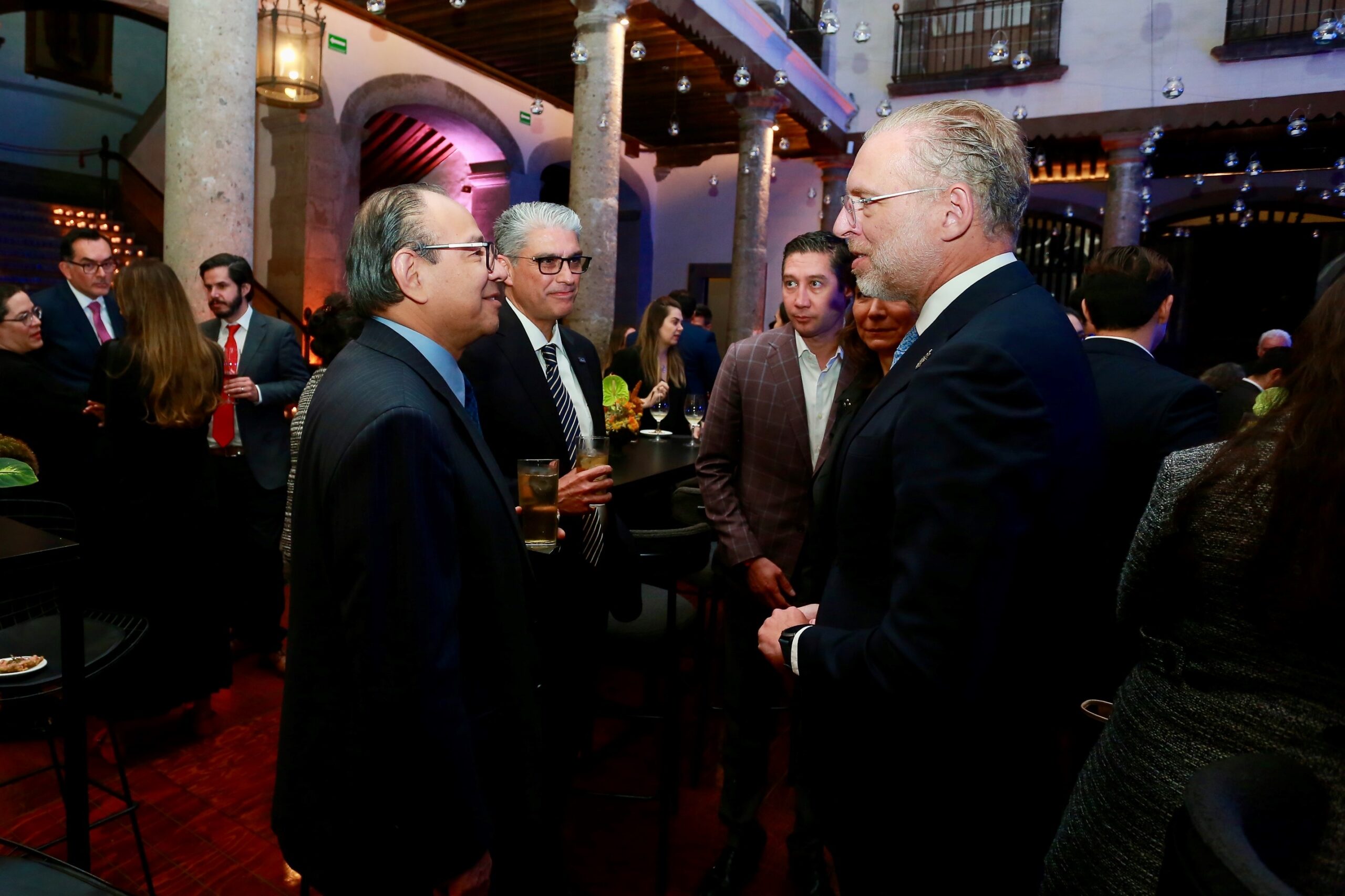 Dentrodel evento, Del Prete Tercero tuvo oportunidad de saludar al presidente entrante del consejo, Manuel Bravo; al subsecretario de Comercio Exterior de la Secretaría de Economía (SE), Alejandro Encinas Nájera; al próximo titular de la SE, Marcero Ebrard; así como a integrantes de la AMSDE y del Consejo de Empresas Globales.