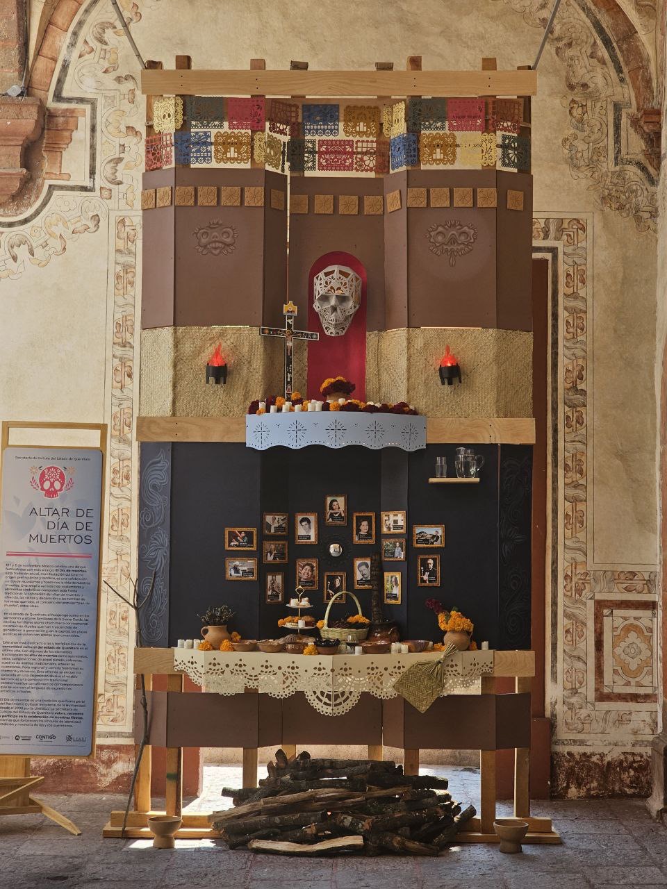 Con algunos de los elementos tradicionales del altar de muertos como sus retratos, velas, composiciones de papel picado, calaveras, cuadros de ánimas tradicionales, artesanías queretanas, flora regional y comida, en el CEART se honra la memoria y el recuerdo de los muertos.