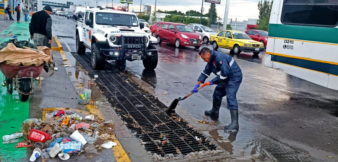 Asimismo, se realizaron acciones de limpieza de rejillas obstruidas por basura en inmediaciones de 5 de Febrero, a la altura de la colonia San Pablo, a fin de agilizar el tránsito vehicular en la zona.