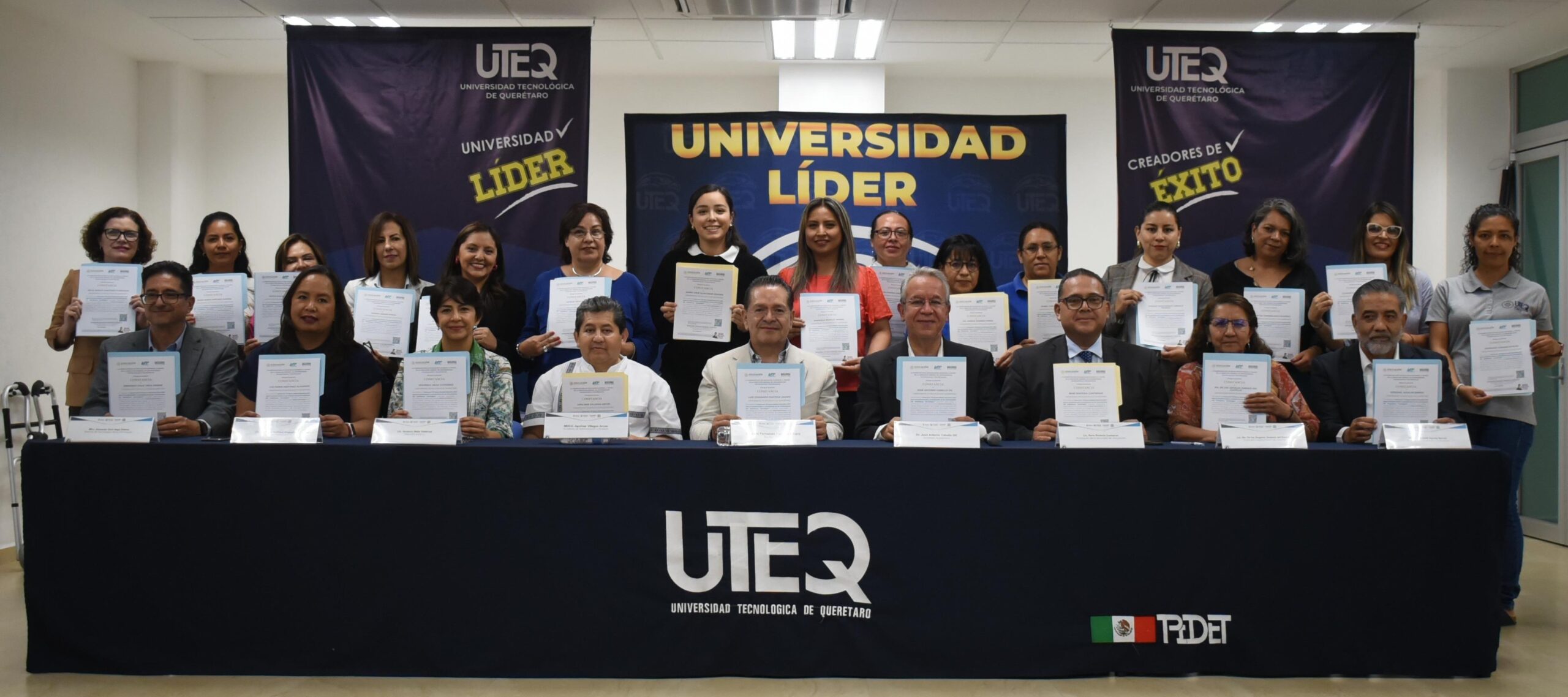 El rector de la Universidad Tecnológica de Querétaro (UTEQ), Luis Fernando Pantoja Amaro, entregó reconocimientos y felicitó a los más de 300 docentes e integrantes de la plantilla del personal administrativo que concluyeron con éxito el Diplomado en línea: «El Nuevo Modelo Educativo y su implementación en las Universidades del Subsistema Tecnológico», convocado por la Dirección General de Universidades Tecnológicas y Politécnicas (DGUTyP).